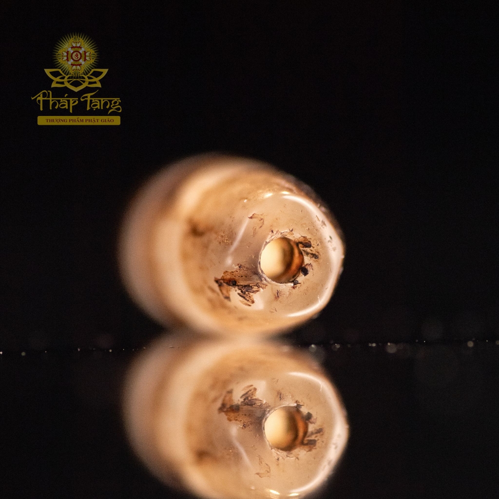 Pháp bảo tại Pháp Tạng mang họa tiết sọc ngang – một trong những hoa văn cơ bản và quyền năng nhất. Các đường sọc song song, bao bọc quanh thân Dzi, mang ý nghĩa: