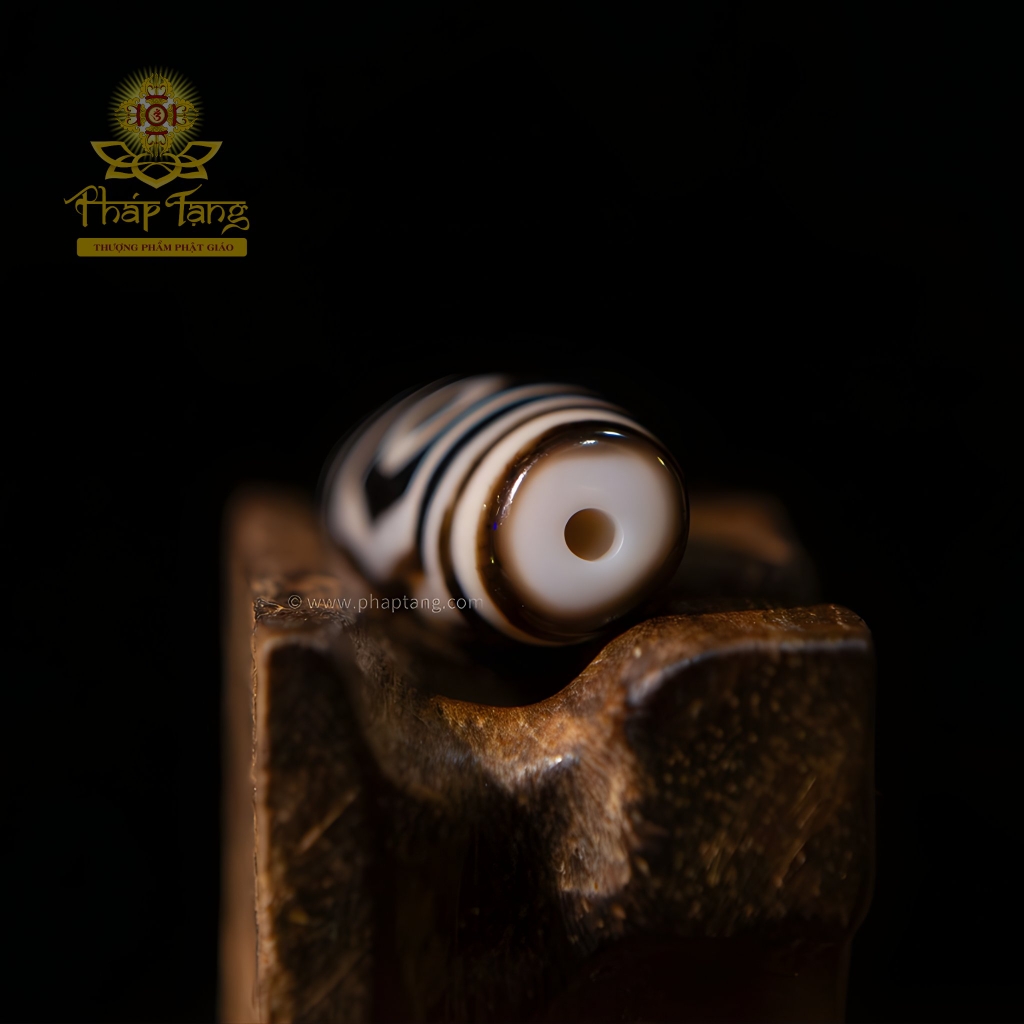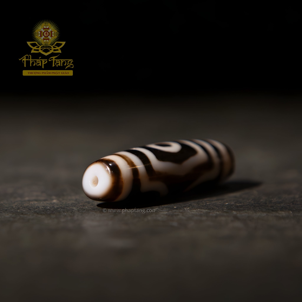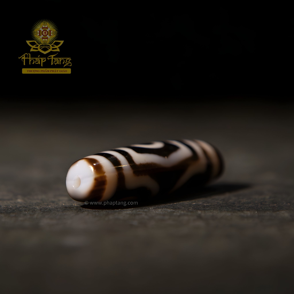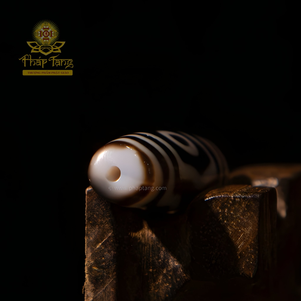 Vẻ đẹp độc đáo của viên Dzi nằm ở sự tương phản mạnh mẽ giữa "thân đen" và "vệt sáng". Đây không chỉ là đặc điểm vật lý, mà còn là một biểu tượng tâm linh sâu sắc: