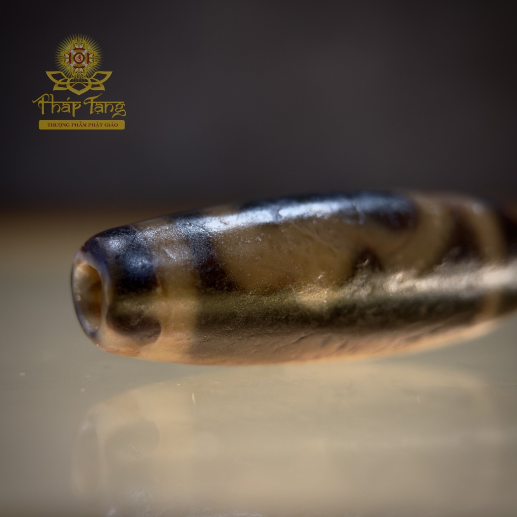 Pháp bảo này hội tụ năng lượng của một viên Dzi Chữ OM Cổ, với bề mặt phong hóa và vân nét mềm mại đặc trưng. Đây là vật phẩm hộ trì thượng hạng cho những ai tìm kiếm sự sáng suốt siêu việt, khả năng tịnh hóa nghiệp chướng và sự bảo hộ tâm linh sâu sắc.