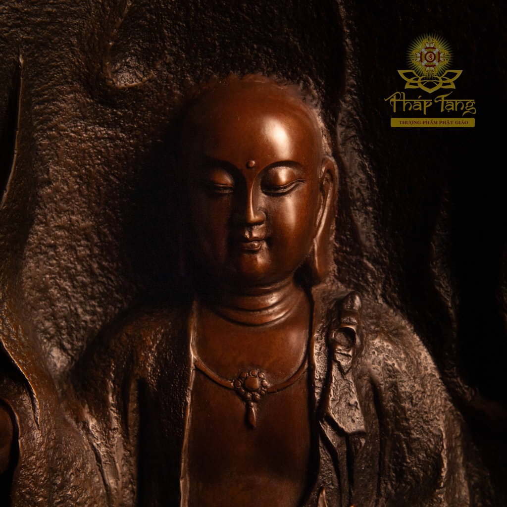 Thánh tượng được chế tác từ chất liệu đồng đúc nguyên khối, đảm bảo sự bền vững, trang nghiêm và trường tồn theo thời gian. Với chiều cao 65cm, pháp bảo này phù hợp để tôn thờ tại gia, đạo tràng hoặc không gian tu tập, tạo nên một trường năng lượng từ bi và thanh tịnh. Mỗi đường nét điêu khắc đều thể hiện sự từ ái, hiền hậu của Bồ Tát, nhắc nhở người thờ phụng luôn hướng tâm về điều thiện lành.