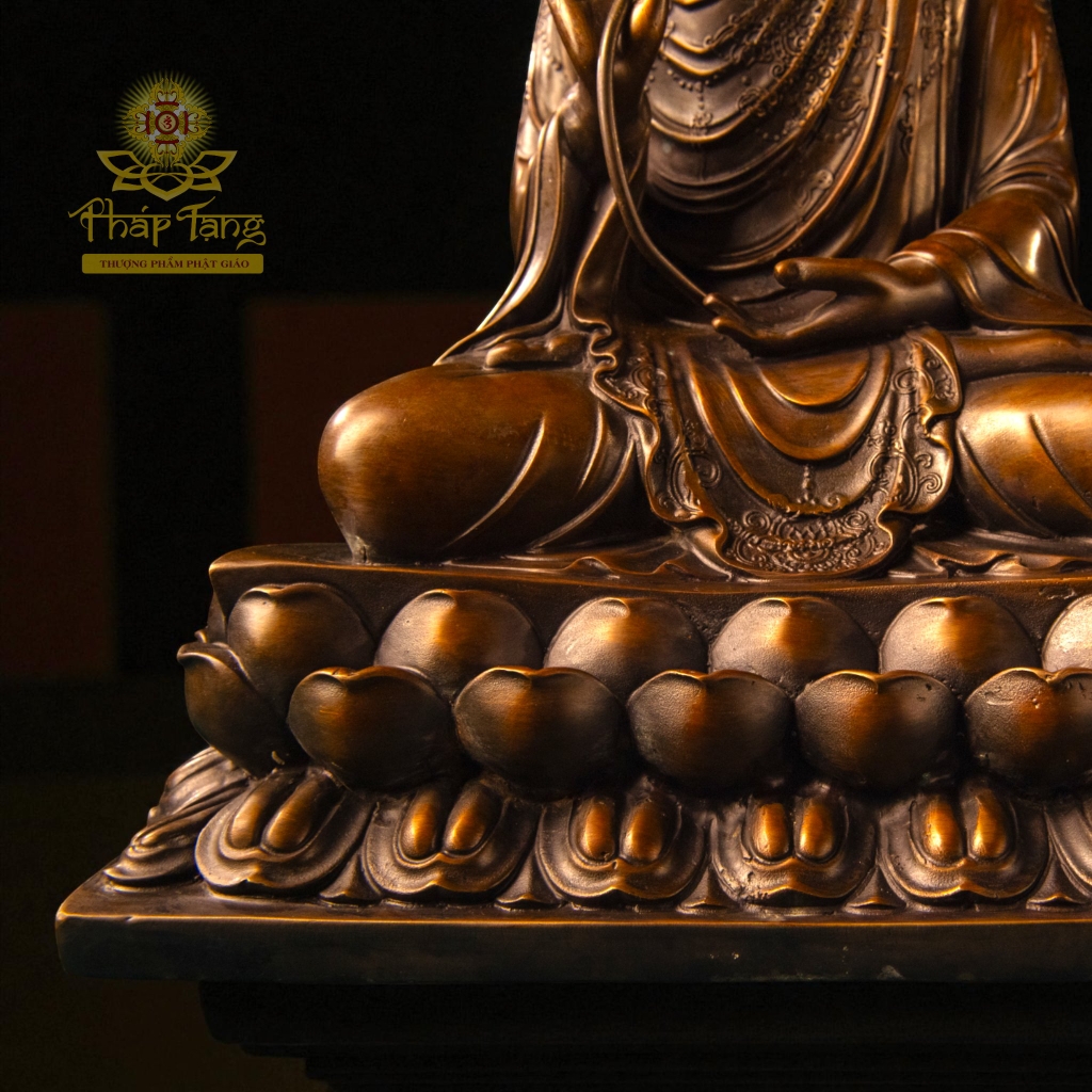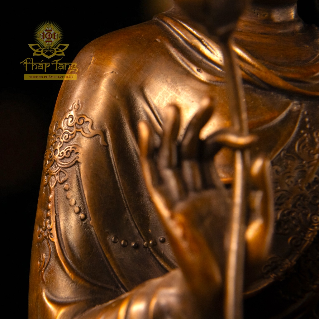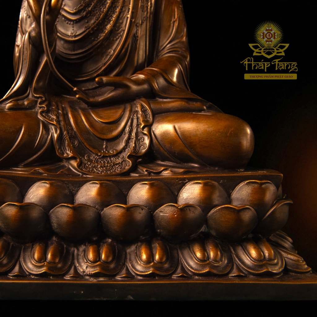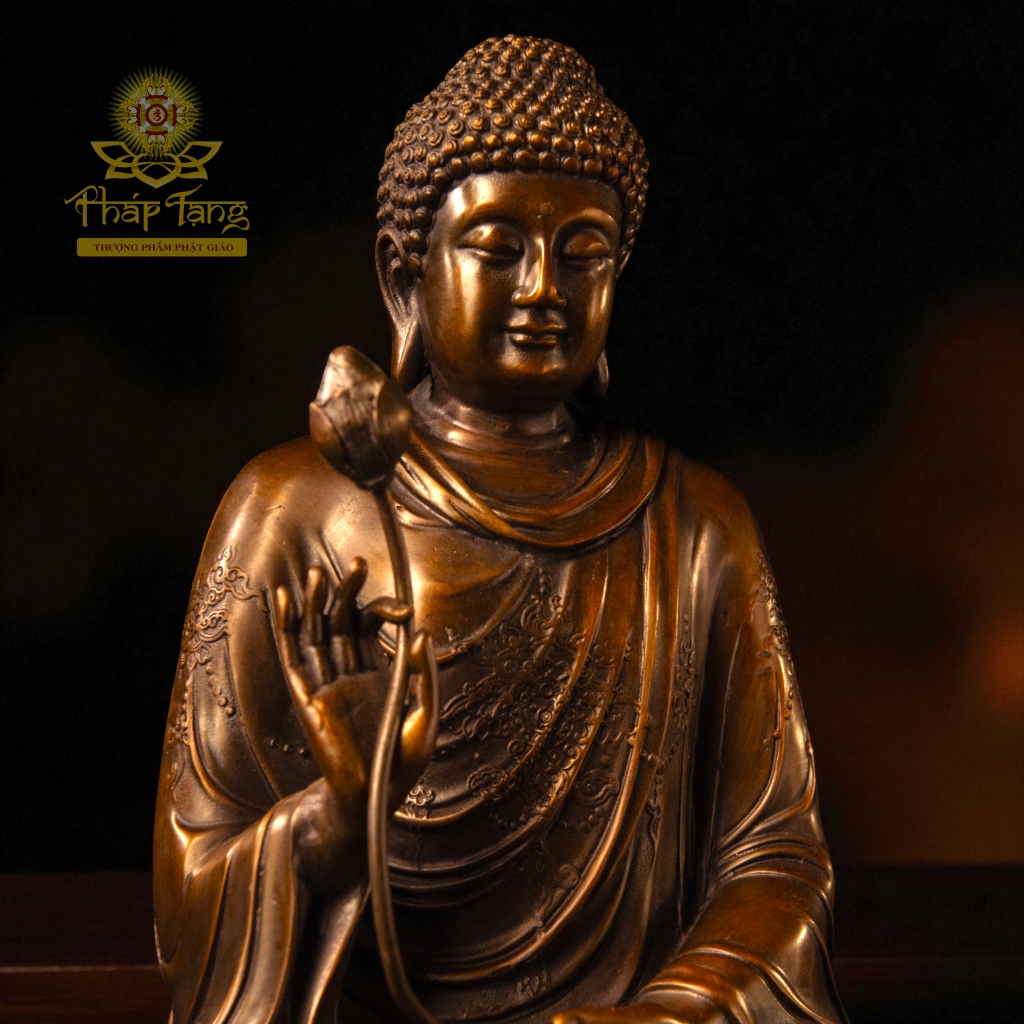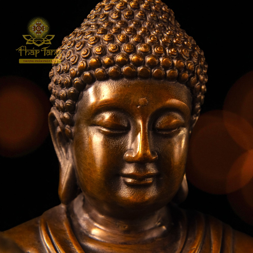 Thánh tượng được Pháp Tạng sưu tầm, chế tác từ chất liệu đồng nguyên khối. Pháp tướng Đức Bổn Sư an nhiên, tự tại trong tư thế thiền định, tay cầm cành hoa sen. Từng nếp y, đường nét trên khuôn mặt Ngài đều toát lên vẻ từ bi và trí tuệ tĩnh lặng. Với kích thước cao 40cm, ngang 30cm, sâu 21cm, Thánh tượng là pháp bảo vô giá để tôn thờ tại tư gia, thiền đường, hay không gian tu tập của những hành giả hữu duyên với pháp môn Thiền.