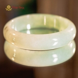Tuyệt phẩm Phỉ Thúy Myanmar sở hữu vệt Hoàng Phỉ (Vàng Mật Ong) tự nhiên trên nền ngọc mịn. Ni tay 55.12mm độc bản. Pháp bảo chiêu tài, mang lại sự no đủ và viên mãn.