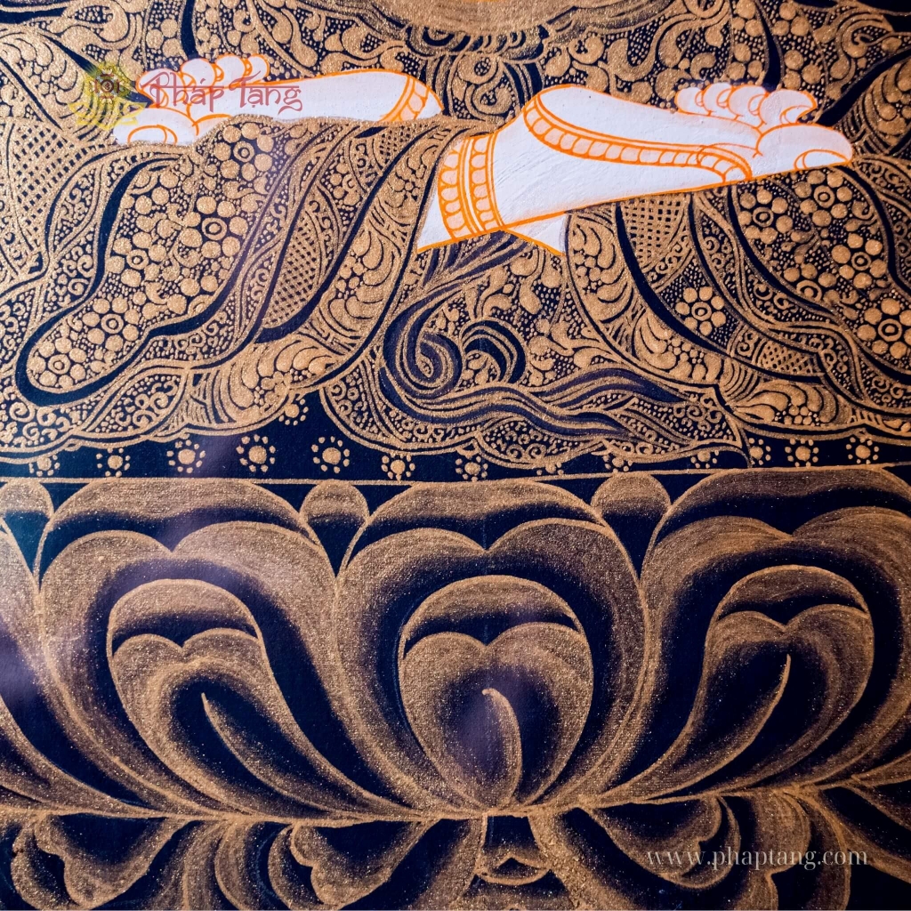 Thangka Đức Bồ Tát Quan Âm Tứ Thủ vẽ tay Nepal 127x157