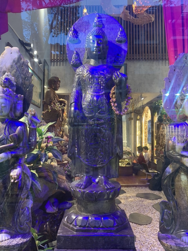 Tượng Đức A Di Đà đá xanh nguyên khối sưu tầm 95cm