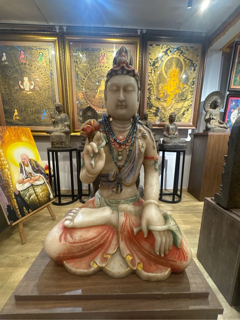 Tượng Đức Bồ Tát Đại Thế Chí thế kiết già bạch ngọc pháp lam hoa văn cổ điển