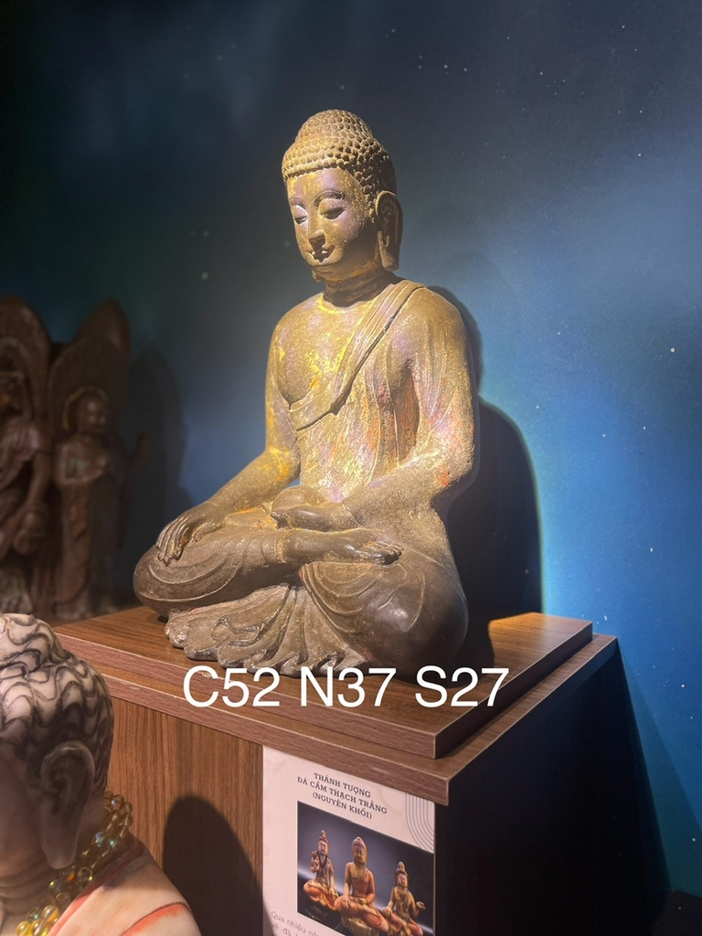 Tượng Đức Bổn Sư Thích Ca ấn xúc địa đá nguyên khối xưa sưu tầm 50cm