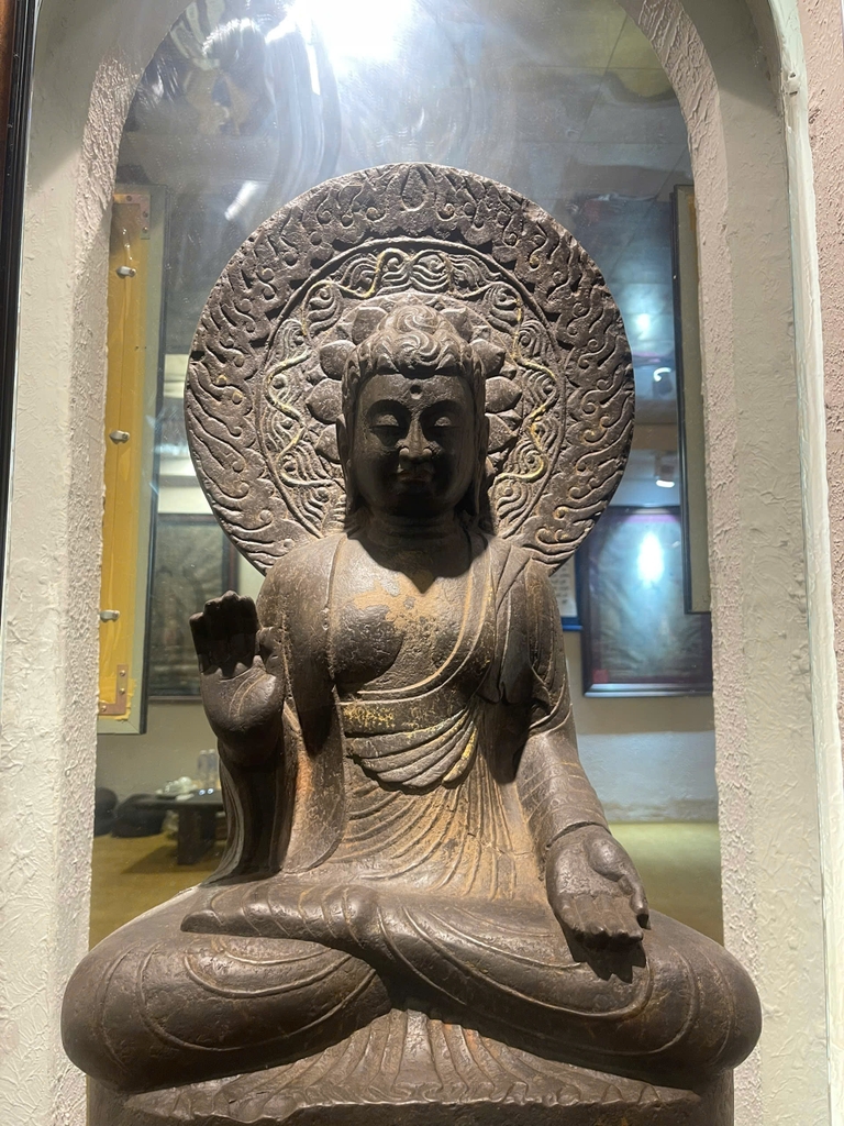 Tượng Đức Bổn Sư Thích Ca đá xanh nguyên khối xưa sưu tầm (69x50x110cm)