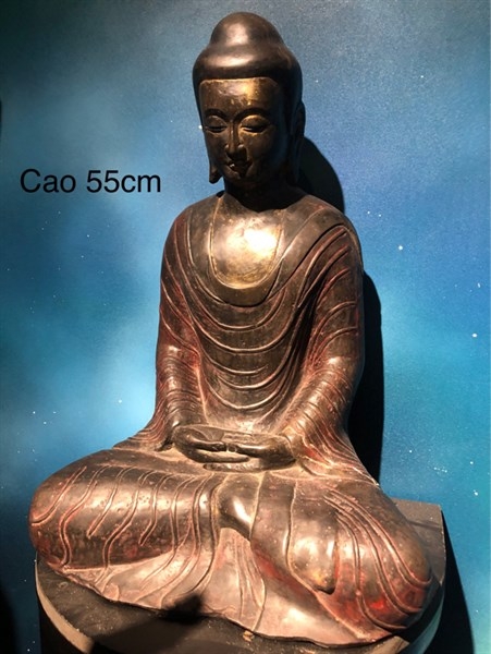 Tượng Đức Bổn Sư Thích Ca đá xanh nguyên khối xưa sưu tầm Ấn Độ 55cm