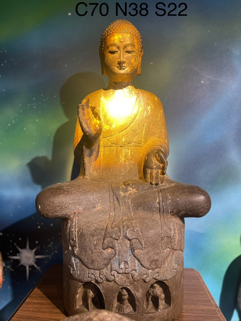 Tượng Đức Bổn Sư Thích Ca đá xanh nguyên khối xưa thế ngồi kiết ấn tiếp dẫn 67cm
