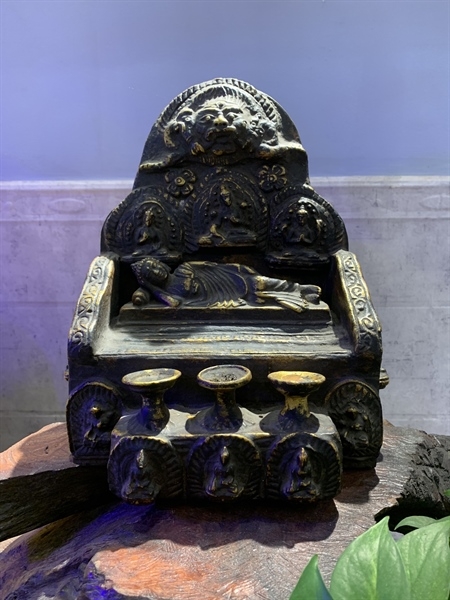 Tượng Đức Bổn Sư Thích Ca nhập niết bàn dạng gau gỗ đen xưa Nepal