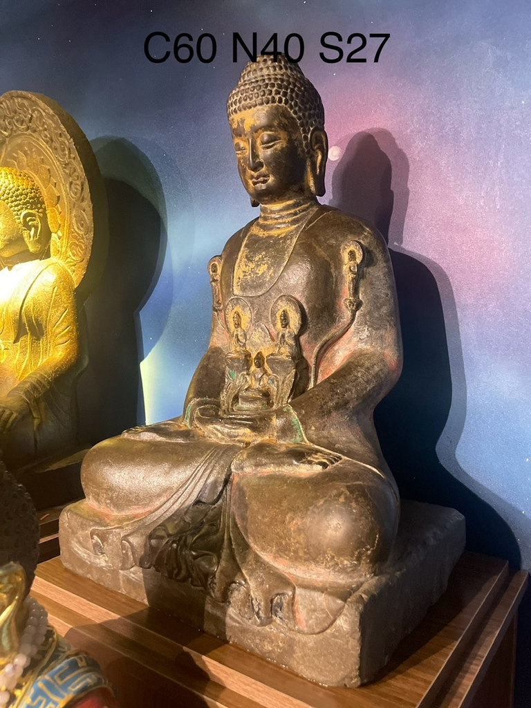 Tượng Đức Bổn Sư Thích Ca thiền định đá xanh nguyên khối xưa sưu tầm 60cm