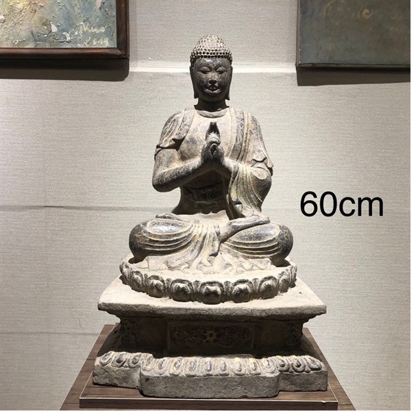 Tượng Đức Đại Nhật Như Lai đá xanh nguyên khối sưu tầm 60cm