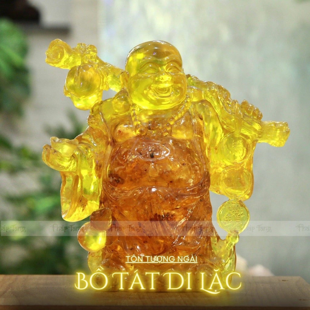 Tượng Đức Di Lặc hổ phách vàng Tây Tạng đặc biệt 20cm