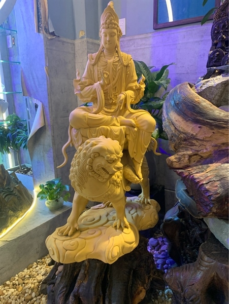 Tượng Văn Thù Sư Lợi Cưỡi Sư Tử Đá Xanh Độc Bản 67cm