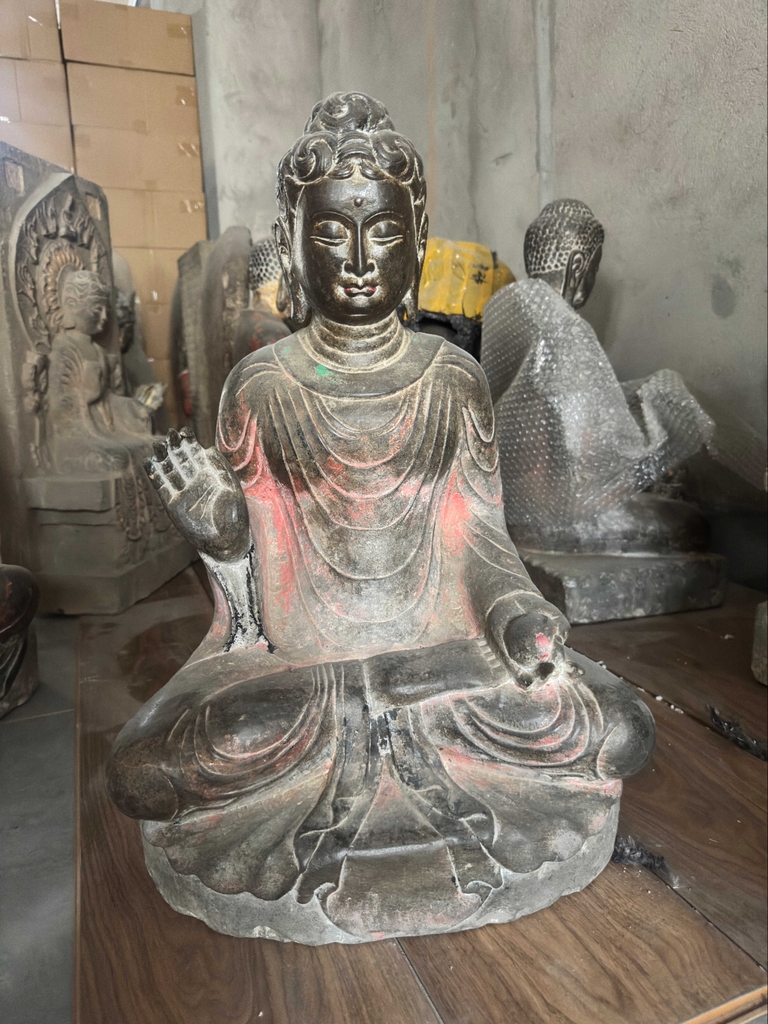 Tượng Phật Thích Ca Đá Xanh Nguyên Khối Thủ Ấn Vô Úy 55cm - Tác Phẩm Sưu Tầm