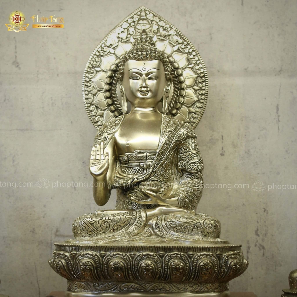 Trong hệ thống Ngũ Phương Phật của Phật giáo Mật Tông, màu trắng – bạc gắn liền với Đức Phật Đại Nhật Như Lai (Vairocana) – đại diện cho Pháp giới thể tính trí (trí tuệ thanh tịnh của Pháp thân). Tượng Thích Ca mạ bạc thể hiện phẩm hạnh thanh tịnh tuyệt đối, trí tuệ như gương sáng – đặc trưng của Mật thừa không có trong dòng tượng Tịnh Độ hay Nam Tông thông thường.