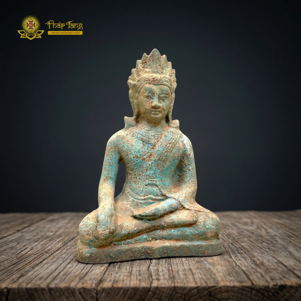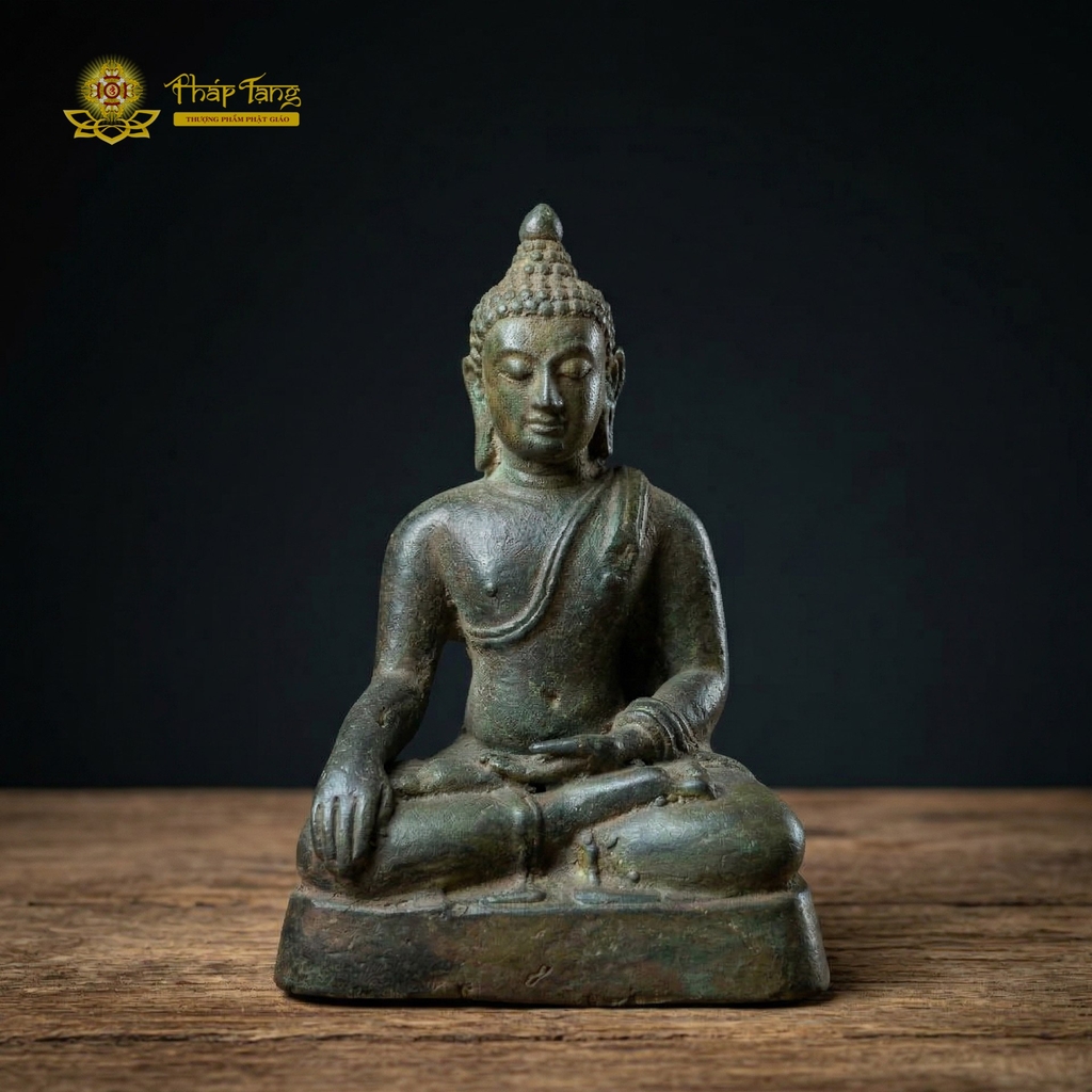 Điểm làm nên giá trị sưu tầm đắt giá nhất của bộ tượng chính là bề mặt đồng đã lên nước thời gian. Lớp gỉ đồng (patina) chuyển sang sắc xanh xám hoặc nâu đen loang lổ một cách tự nhiên, tạo nên một vẻ đẹp không thể làm giả hay sao chép bằng máy móc. Kết hợp với nghệ thuật tạo hình Phật giáo Nam Tông (Thái Lan) – đặc trưng bởi nhục kế vươn cao như ngọn lửa và y áo vắt chéo vai thanh thoát – tôn tượng toát lên một sự uy nghi nhưng vô cùng gần gũi, xoa dịu mọi muộn phiền.