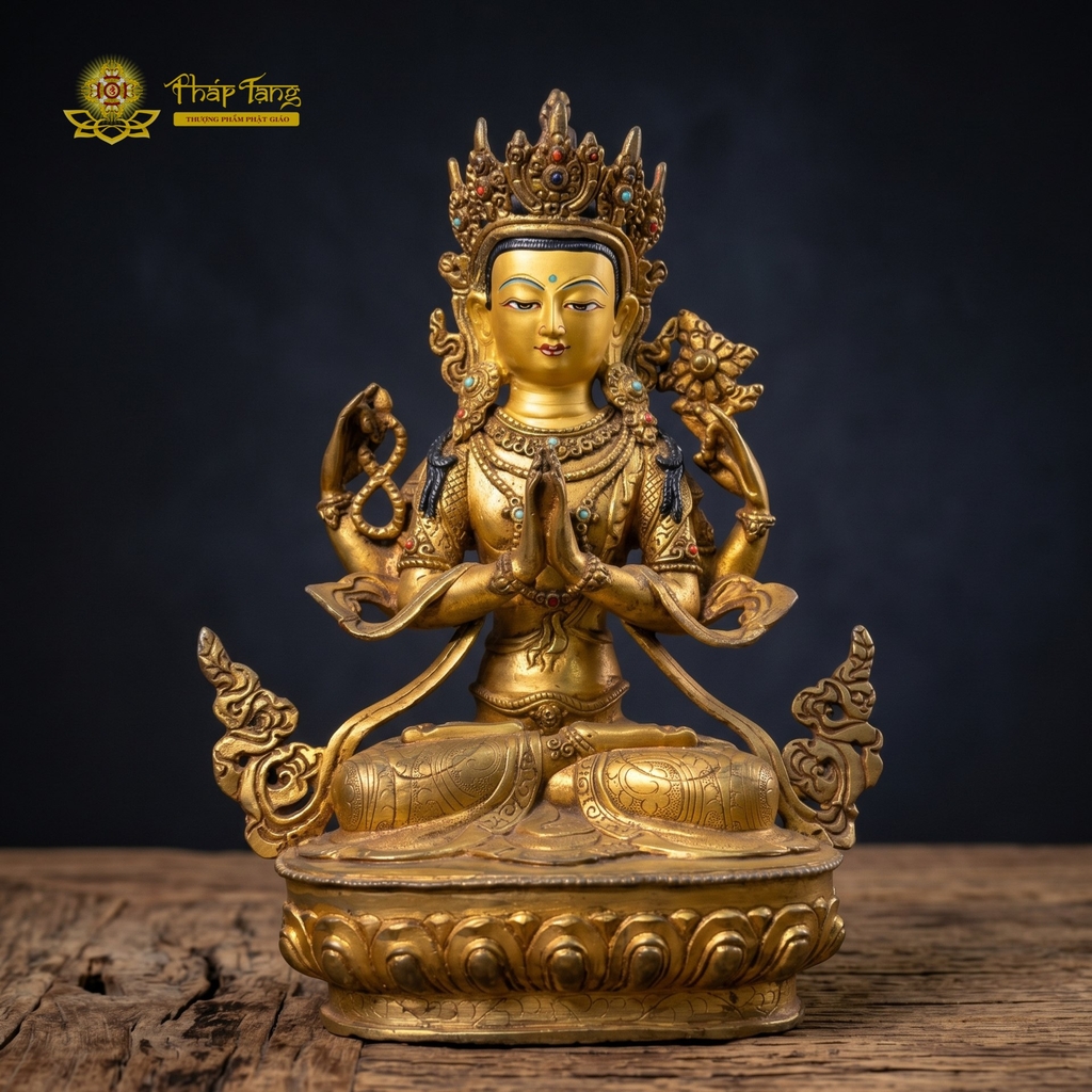 Bảo vật tượng Quán Thế Âm Bồ Tát Tứ Thủ đồng vàng Nepal 32cm là một kiệt tác tâm linh mang đậm hơi thở của nghệ thuật Himalaya. Tôn tượng không chỉ là một pháp bảo thờ phụng trang nghiêm mà còn là một tác phẩm nghệ thuật điêu khắc đạt đến độ xảo diệu, mang lại trường năng lượng bình an cho không gian thiết trí.